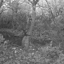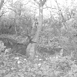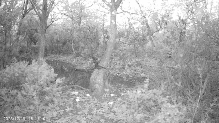 Fotokapanima yakalanan bir karatavuk. Agacin gövdesinde duruyor .