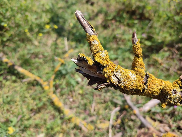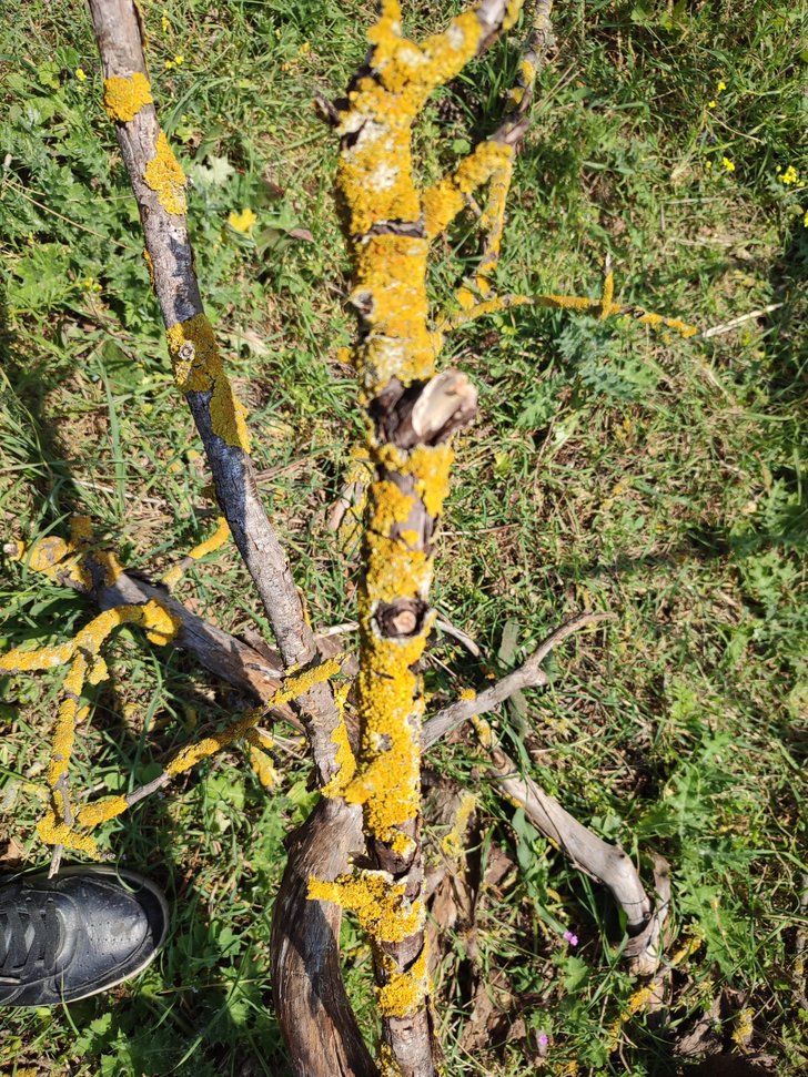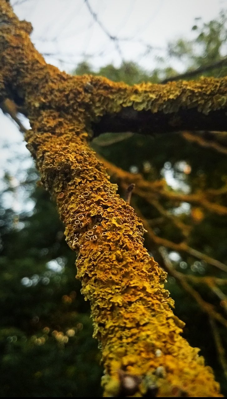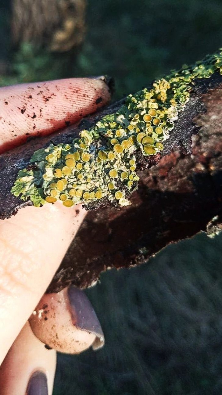 Loblar 3-6 mm uzunluğunda ve 2-5 mm genişliğinde, ince, pürüzsüz ila düzensiz kırışıklı veya zayıf derecede kıvrımlı veya çukurlu, sıklıkla belirgin faveolat, yükseltilmiş, tam , sıklıkla kıvrımlı kenarlara sahip. Üst yüzey sarı-turuncu veya yeşilimsi-sarı ila gölgeli durumlarda soluk yeşilimsi-gri, mat veya parlak, pürüzsüz ila ± faveolat-katlı. Alt yüzey soluk sarımsı veya beyazımsı, rizinattır. Rhizines seyrek, kısa, basit , beyaz. Apothecia sapsız , ± merkezi, lekanorin, 5 mm çapa kadar, kenarlar ince, kalıcı, thallusla aynı renkli , sıklıkla içe doğru bükülmüş, disk düzlemi veya yarı içbükey, sarı-turuncu, mat. Askospor elipsoidi , 11-26 × 6-9 µm. Kartal / Aydos ormanı