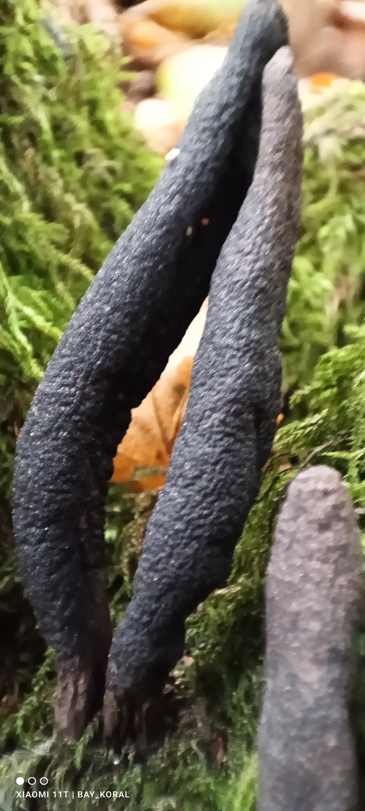 Bu türün boyu 2-8 santimetre arasında değişirken kalınlığı ise yaklaşık 2 santimetreye kadar ulaşabilir. Gövde rengi yaşa göre değişir; genç örnekler gri veya kahverengidir, zamanla gövde rengi kararmaktadır. Meyve gövdesinde zamanla çatlamalar meydana gelir. Ölü bir adamın iskemik (kansız) parmağı görüntüsünü andırdığı için bu isim verilmiştir. Daha fazla bilgi almak için buraya tıklayın.