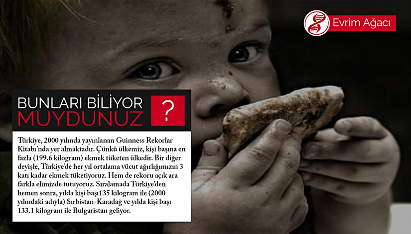 Türkiye, 2000 yılında yayınlanan Guinness Rekorlar Kitabı’nda yer almaktadır. Çünkü ülkemiz, kişi başına en fazla (199.6 kilogram) ekmek tüketen ülkedir. Bir diğer deyişle, Türkiye’de her yıl ortalama vücut ağırlığımızın 3 katı kadar ekmek tüketiyoruz. Hem de rekoru açık ara farkla elimizde tutuyoruz. Sıralamada Türkiye’den hemen sonra, yılda kişi başı 135 kilogram ile (2000 yılındaki adıyla) Sırbistan-Karadağ ve yılda kişi başı 133.1 kilogram ile Bulgaristan geliyor.