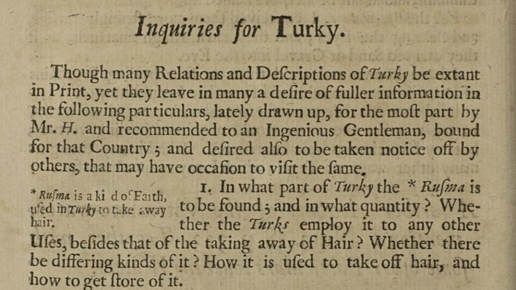 - 1667 yılında yayımlanan Kraliyet Cemiyeti'nin Philosophical Transactions dergisinde Türkiye hakkında yazılmış en eski akademik makalelerden biri bulunmaktadır.