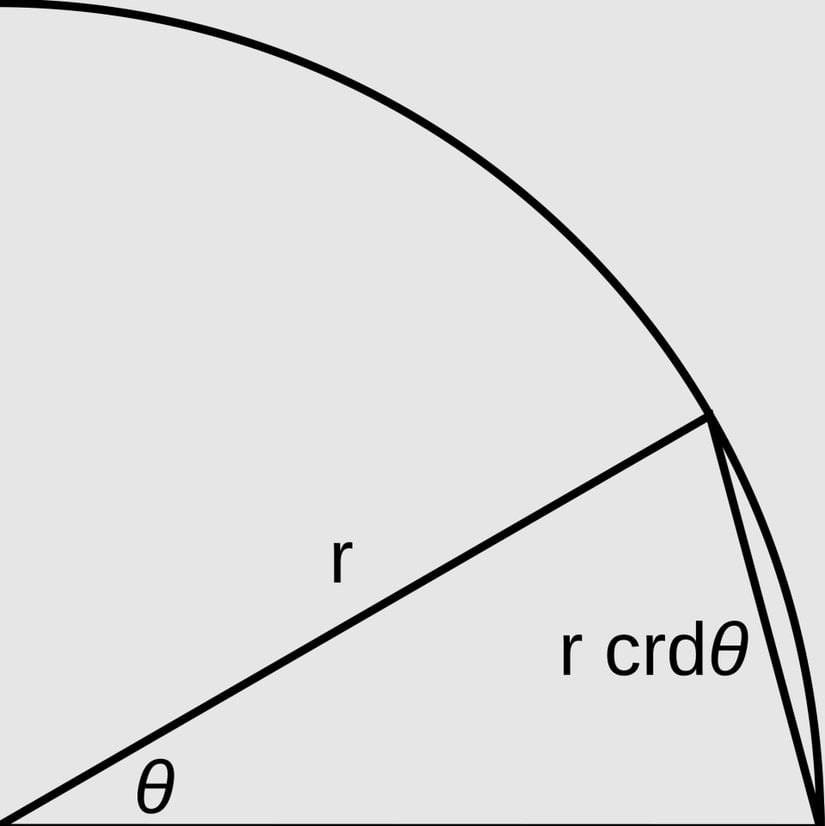 crd(θ)=2sin(θ2)\displaystyle \operatorname {crd}(θ) = 2 \sin(\frac{θ}{2})