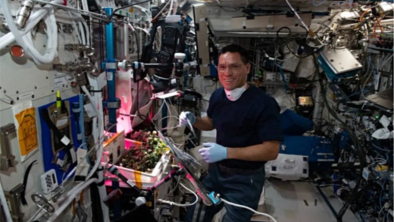 Kırmızı ardıç domatesi, gelecekte yapılması hedeflenen uzun vadeli görevler için uzayda ürün yetiştirmeye yönelik bir NASA deneyinin parçası olarak yetiştirildi.[2] Rubio, uzayda taze yemeklerden ayrı geçirdiği süreçte elde ettiği bu başarının oldukça gurur verici olduğunu söylüyor.