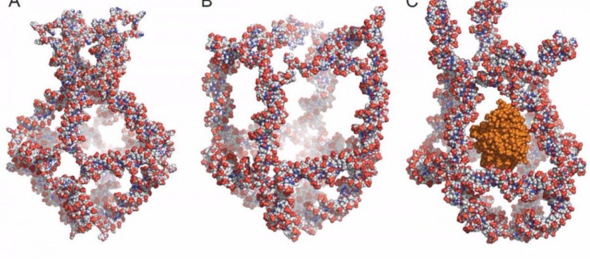 DNA’nın kendi yapısal özelliklerini kullanarak araştırmacılar, vücudun doğal moleküllerinden oluşan 8 özel DNA molekülü tasarladılar. Bu DNA molekülleri karıştırıldığında kendiliğinden bir bütün (nano-kafes) oluşturuyorlar.