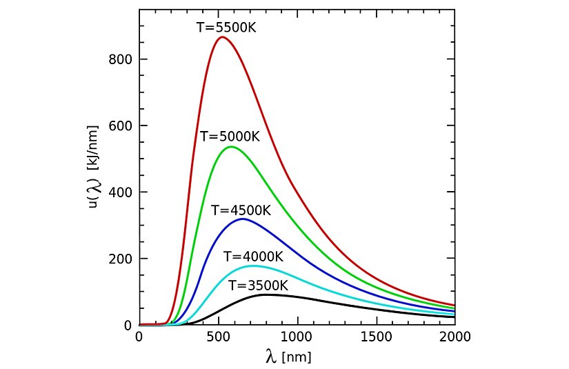 Güneş'in yüzey sıcaklığı olan yaklaşık 5780 K değeri için, λmax=500nmλ_max = 500 nm olmaktadır. Buradaki animasyonda, sıcaklığa bağlı olarak kara cisim ışımasının nasıl değiştiğini ve Wien yasası sayesinde maksimum yapan dalga boyunun ne olduğunu bulabilirsiniz.
