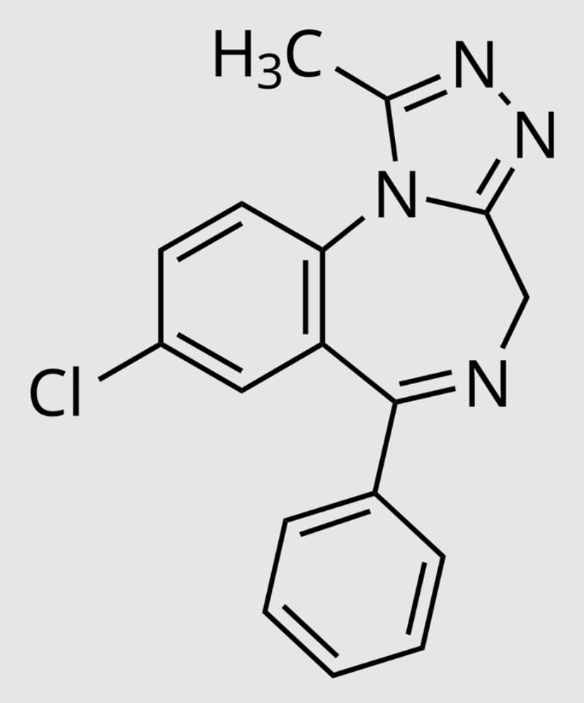 Alprazolam, Batı dünyasında anksiyete ve panik bozukluklarının tedavisi için yaygın olarak reçete edilen bir triazolobenzodiazepindir. Benzodiazepin reseptörlerine bağlanma özellikleri niteliksel olarak diğer benzodiazepinlere benzer.