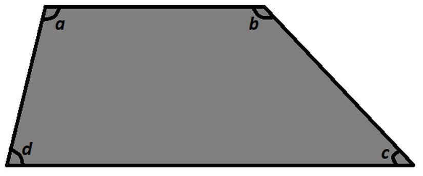 Tüm dörtgenlerde olduğu gibi, Öklidyen uzayda yamuğun da iç açıları toplamı 360°'dir. Bununla birlikte ikizkenar ve dik yamuk hariç, yamukların tüm iç açıları birbirinden farklıdır. Tabii her açının birbirinden farklı olması rastgele oldukları anlamına gelmez. Türü fark etmeksizin, karşılıklı paralel kenarlardan olan açılar için, iki açının toplamı daima 180°'dir. Yani aşağıdaki görselde verilen a+da+d ve b+cb+c daima 180°180° olur. Bu durum, tanımından da anlaşılacağı üzere paralelliğin doğurduğu bir sonuçtur, neden böyle olduğunu düşünmeyi size bırakıyoruz.