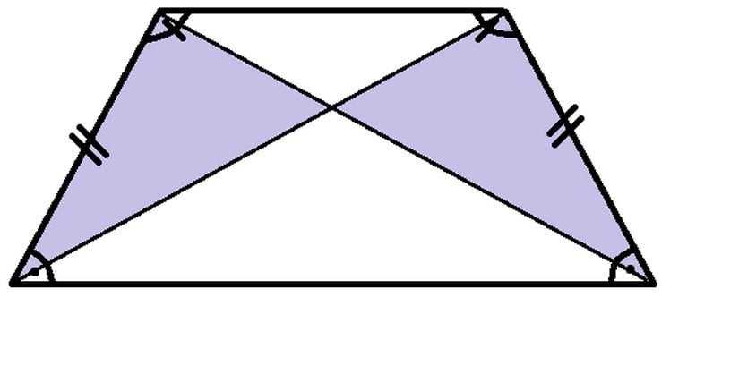 Köşegen, bir geometrik şekilde komşu olmayan iki köşeyi birbirine bağlayan doğru parçasına verilen addır. İkizkenar yamuk hariç yamuklarda köşegen uzunlukları birbirinden farklıdır. İkizkenar yamuğun ise iki köşegeninin uzunlukları birbirine eşittir. Bu nedenle ikizkenar yamuğun köşegenlerinin yamuğu böldüğü dört parçadan ikisinin alanı birbirine eşittir. Birbirine eşit olan bu alanlar aşağıdaki görselde renkli gösterilen kısımlardır.