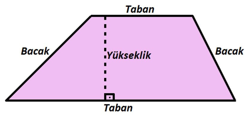 A=U¨st taban+Alt taban2×Yu¨kseklik\Large A = \frac{\text{Üst taban} + \text{Alt taban}}{2} \times \text{Yükseklik}