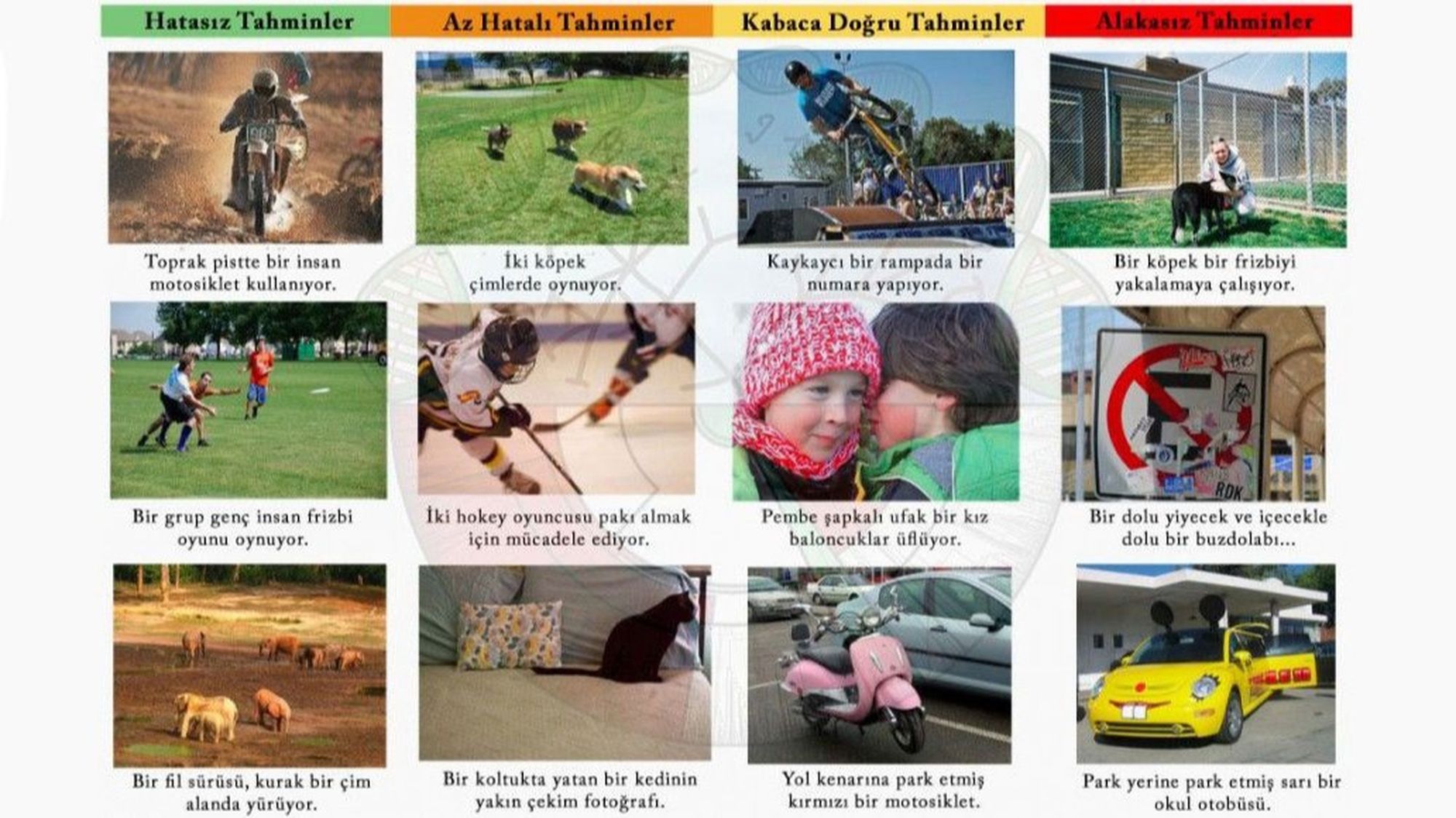 Geliştirilen ve zaman içerisinde daha iyi sonuçlar elde etmek yönünde eğitilebilen bu sistem, yapay nöral (sinir) ağları denen bir yazılım mimarisi kullanıyor. Bu, tıpkı insan beyninin çalışma prensibini taklit eden bir sistemdir. Bu sistem sayesinde bir bilgisayar, kendisine verileri giderek daha iyi işlemeyi zamanla ve deneyimle öğretebiliyor. Fotoğrafta, ilk denemeler sırasında alınan sonuçlardan bazılarını Türkçeye çevirdik. Bunların bir kısmı ürkütücü derecede isabetliyken, bazıları gülmenize neden olabilir.