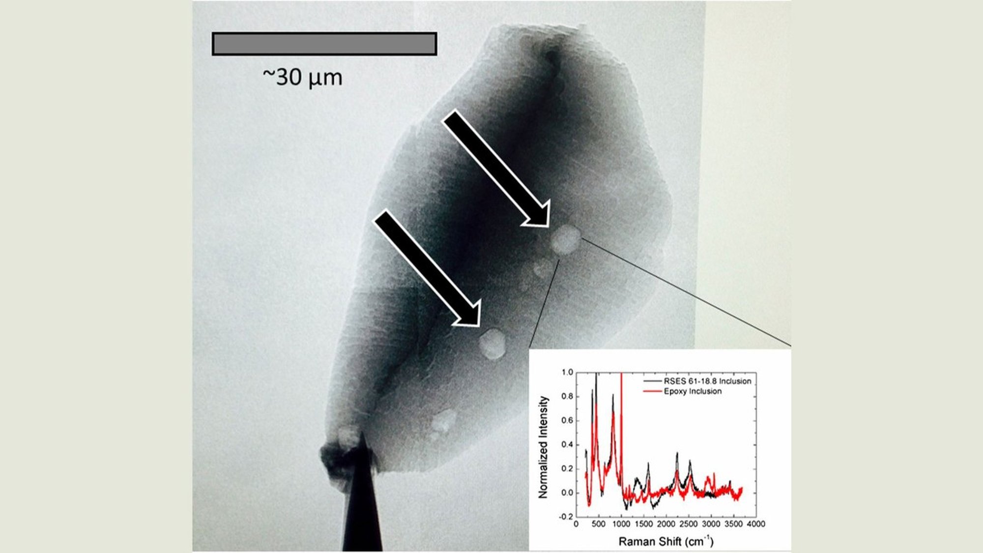 Bell ve Boehnke yaptıkları kimyasal incelemeler sonucunda bu 79 zirkondan bir tanesinin iki bölgesinde grafit, saf karbon, tespit ettiler. Harrison bu buluş hakkında şunları söylüyor,