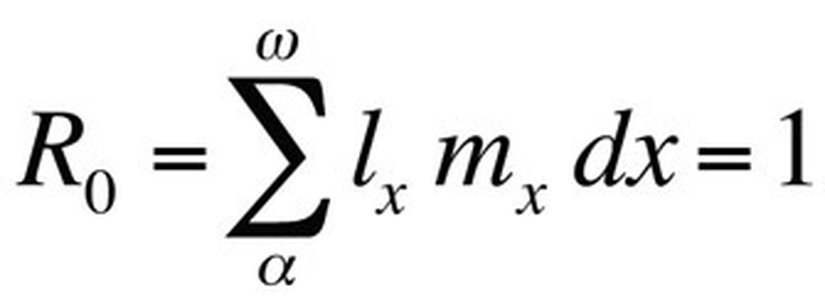 NatureDönüşen eşitlikte R0 değişkeni, bir ömürde her dişi bireyden çıkacak dişilerin beklenen sayısını, yani net üreme hızını temsil etmektedir. Bu eşitlik, kesintisiz nesil eşitliğine göre daha basittir ve r sıfır ya da sıfıra yakın bir değer olduğu zaman kullanılabilir. Büyüme göstermeyen durağan popülasyonlar için R0 en uygun yaşama uygunluk ölçüsüdür (Stearns 1992, Roff 1992, Brommer 2000). Bu altyapı kullanılarak yaşama uygunluğun hangi yaşam öyküsü karakterleri ile azami duruma geldiği veya bu karakterlerden birinin değişmesi halinde yaşama uygunluğun ne kadar etkileneceği soruları cevaplanabilir. Yaşam öyküsü karakterlerinin evriminin öngörülmesinde bu yaklaşım başarıyla kullanılmıştır.