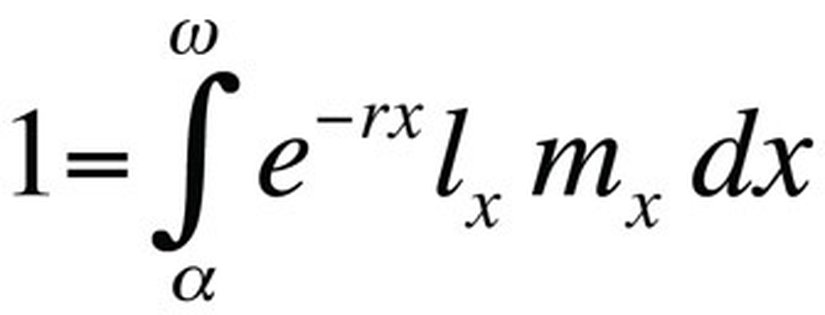 NatureEşitlik incelendiğinde kullanılan değişkenler farklı girdileri temsil etmektedir. Eşitliğin ele aldığı bir organizma için, α ilk üreme yaşını, ω son üreme yaşını, lx organizmanın doğumdan X yaşına kadar geçen sürede hayatta kalma olasılığını, mx organizmanın X yaşında beklenen yavru sayısını, r ise Maltusyen parametresi denilen, popülasyon büyüme hızını temsil eder. Bu eşitlik, popülasyonu oluşturan organizmaların ömürleri boyunca sahip oldukları hayatta kalma ve üreme olasılıklarının toplamını sunarak, r değişkeni için çözümlenebilir. Burada dikkat edilmesi gereken husus, yaşam öyküsü kuramında r değişkeni bir klonun yaşama uygunluğunu ya da büyüme hızını veya eşeyli üreyen organizmalarda bir alelin yaşam öyküsünü etkileme hızını temsil ettiğidir. Bu nedenle, eşitlikteki üstükapalı varsayım model popülasyonun fenotipik ve genotipik olarak eşdeğer bireylerden oluştuğudur. Eşitlikte ifade edilen popülasyon durağan ise (yani büyüme göstermiyorsa), r değişkeni sıfır olur ve eşitlik değişir.