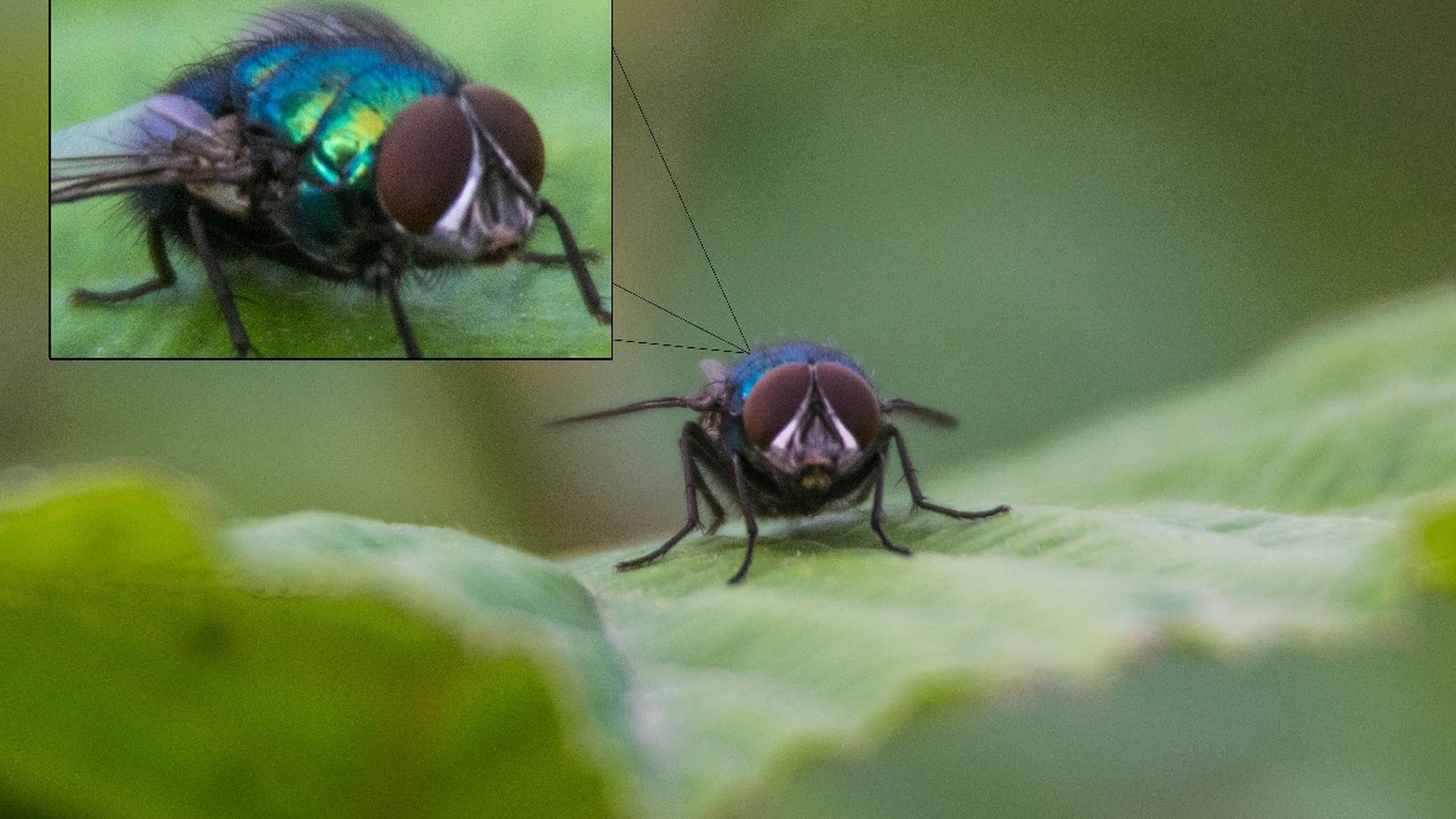 Her yerde sıkça görebileceğiniz bir yeşil sinek olan Lucilia caesar. Biz Zonguldak'ın sokaklarından birinde, yaprağın üzerinde fotoğrafladık.