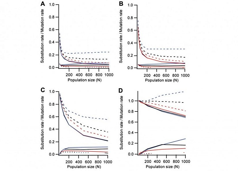 Yapılan analizler, daha önceki bilgilerle uyum içinde. Popülasyon büyüdükçe sabitlenen mutasyon sayısı azalıyor çünkü kuvvetlenen doğal seçilim hafif zararlı mutasyonların sabitlenmesini zorlaştırıyor. Popülasyon küçüldükçe çok sayıda hafif zararlı mutasyon zayıflayan doğal seleksiyondan kaçarak sabitleniyor. Onların hızla birikmesiyle düşen verimi telafi eden faydalı mutasyonların oranı da yükseliyor. Elbette popülasyonların moleküler evrim hızını etkileyen onlarca değişken var, ancak bu çalışmalar hiç çevresel seçilim baskısı olmadığında bile; rastlantısal olarak birikmiş olan zararlı mutasyonların etkisiyle verim düştükçe; düşen verimi telafi eden faydalı mutasyonların seçilim sayesinde sabitlenmesi gözlemleniyor.